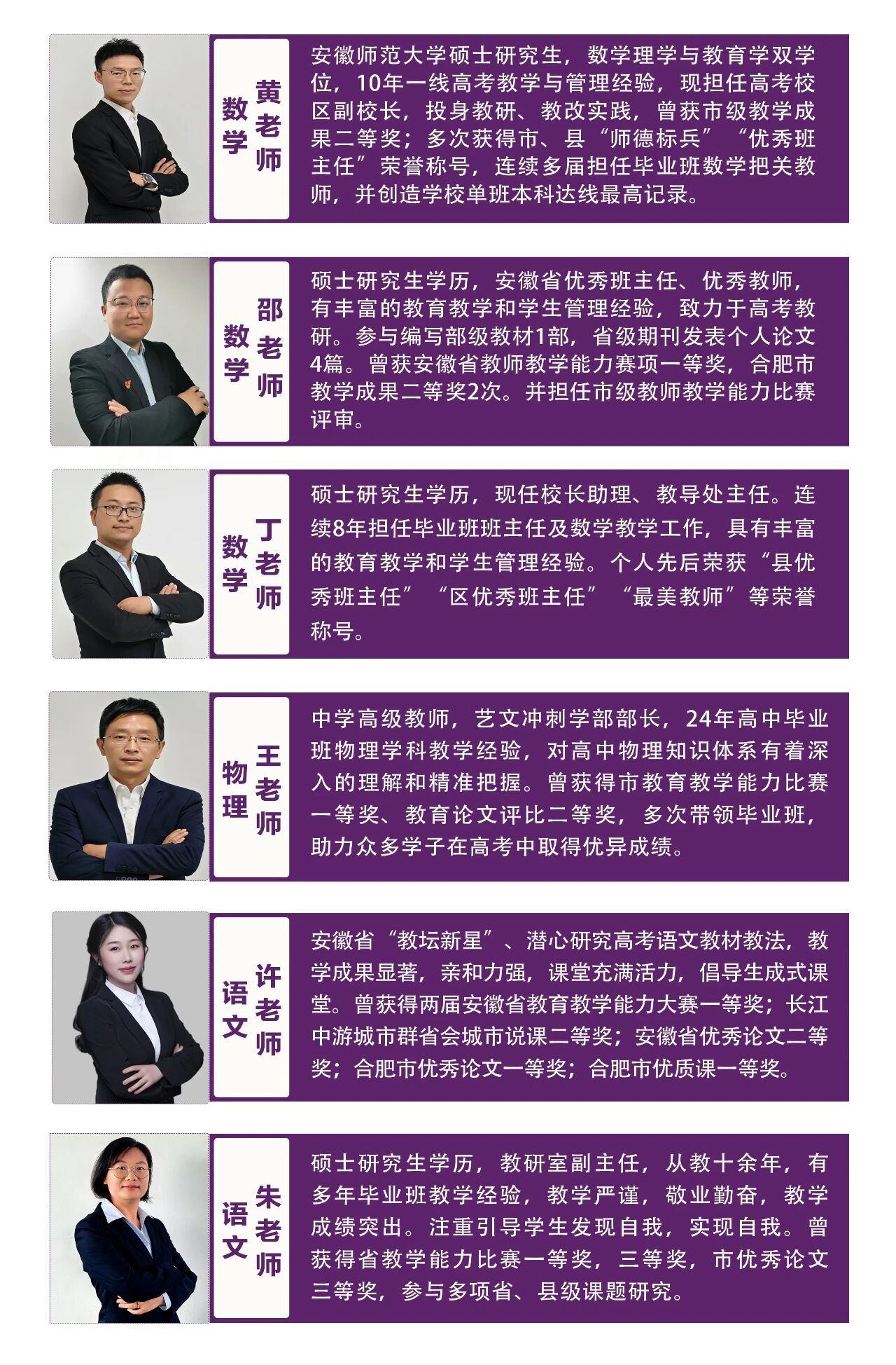 :升学班教师多为中高级职称,省市级学科带头人占比超 60%;95% 教师拥有本科以上学历,艺体教师来自安徽大学、安徽师范大学等名校。 精细管理,专注学习