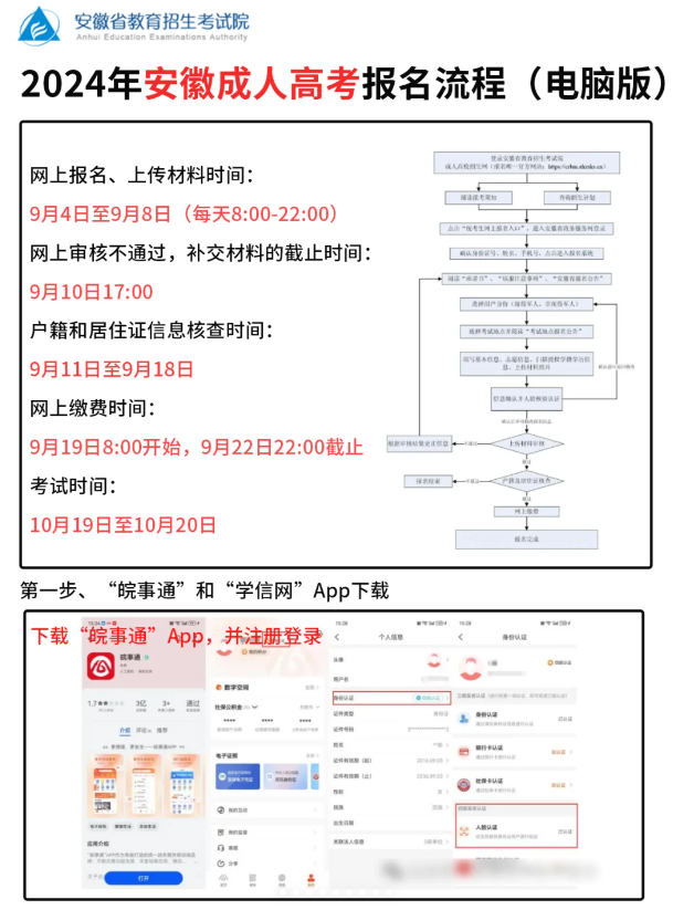 (9月上旬) 登录「安徽省教育招生考试院官网」→ 进入“成人高考报名系统” → 手机号实名注册。 填报信息