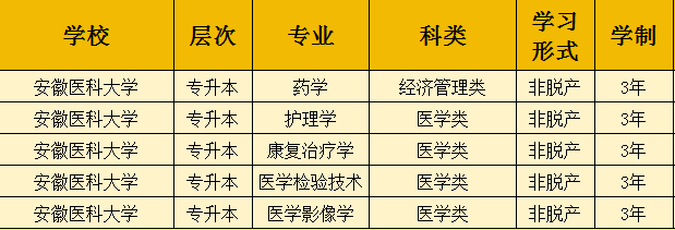 药学(学制3年) 护理学(学制3年) 医学影像学(学制3年) 康复治疗学(学制3年) 医学影像技术(学制3年)