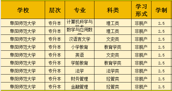 学习形式:函授/业余,学制为2.5年; 学费标准:按安徽省物价局核定标准执行,学费按学年缴纳; 毕业待遇:修满规定学分,成绩合格者由阜阳师范大学颁发国家承认的成人高等教育本科毕业证书,符合学位授予条件者可申请学士学位。