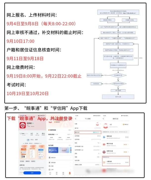 :登录“安徽省成人高校招生网”填写个人信息; 志愿填报