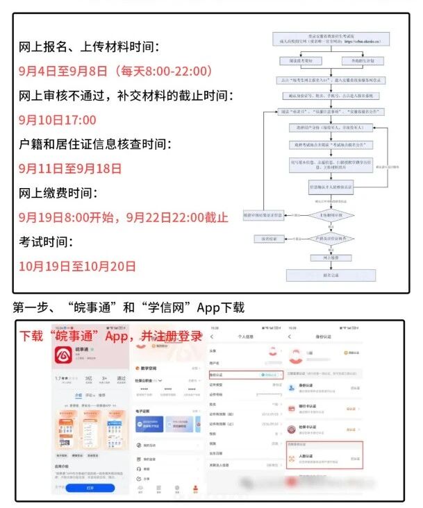 携带报名材料至滁州市南谯区丰乐大道2188号学院继续教育学院,进行资格审核与指纹采集。缴费与打印准考证