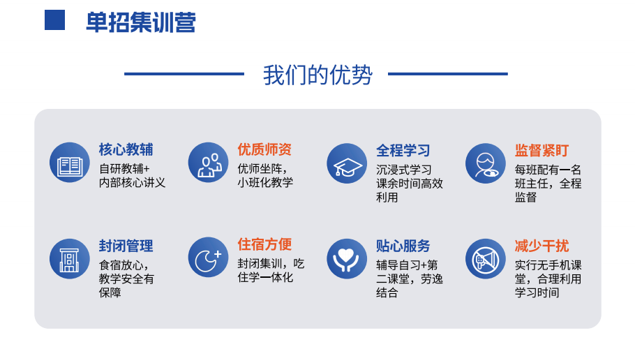 课程体系完善:安徽单招网的课程体系涵盖了文化素质培训、职业技能培训和应试技巧培训等多个方面,旨在帮助考生全面提升应试能力。此外,其还采用“文化课+职业技能+模拟校考”三阶段培训模式,确保考生能够全面覆盖考试内容。