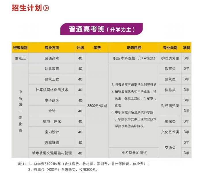 升学保障:中专毕业后,学生可通过对口升学考试或分类考试升入安徽工业职业技术学院大专部,升学率较高。