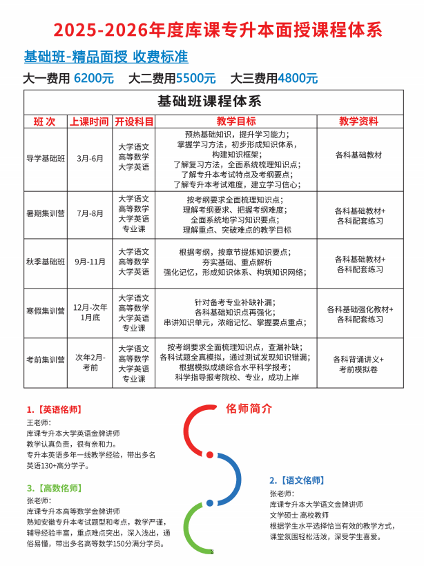 库课专升本为安徽考生提供了多种班型选择,以满足不同基础水平和预算的考生需求。