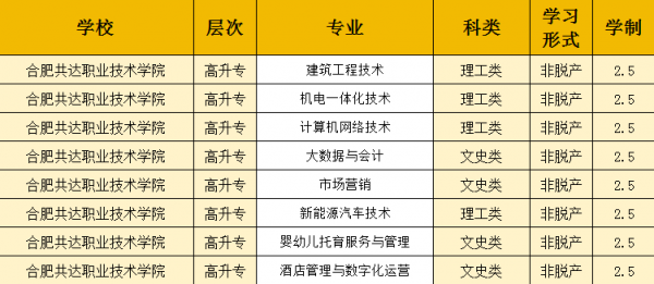 合肥共达职业技术学院成人高考高起专项目,以“稳取证、低难度、强实践”为特色,为职场人士提供了一条高效、可靠的学历提升路径。2026年报考通道即将开启,建议考生尽早联系助学点完成预报名,抢占名额并获取备考支持!