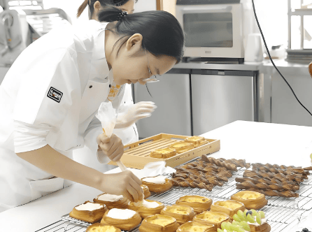 学生每天有4-6小时实训课,从“打鸡蛋”到“做完整蛋糕”,全程动手操作,老师现场指导,确保“学会为止”。