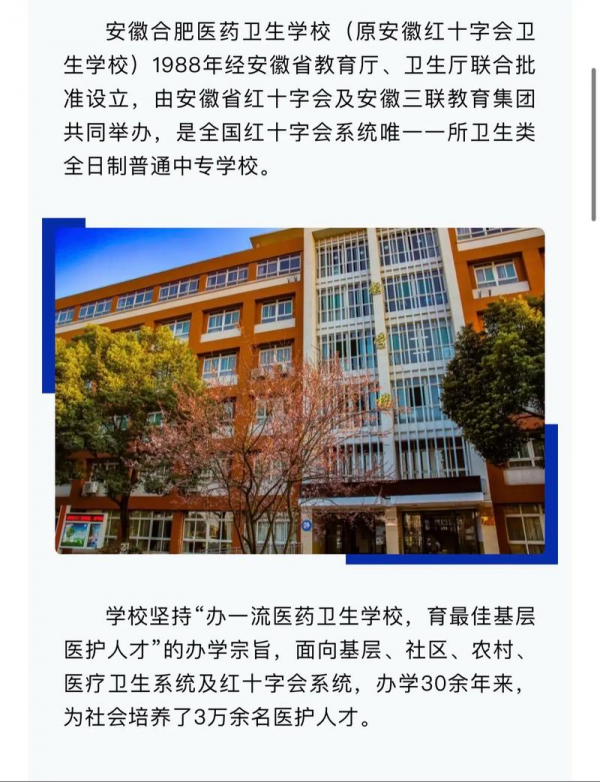 就业保障:与安徽省立医院、安徽医科大学附属医院等60余家医疗机构建立合作,毕业生就业率连续五年超95%,护理、助产专业对口就业率达98%。