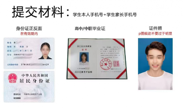 提交材料:身份证、学历证明、一寸彩照(电子版)发送至指定邮箱;