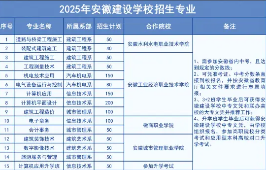 2026年安徽建工技师学院3+2升学班招生名额有限,择优录取,额满即止。欢迎广大应届初中毕业生及家长来电咨询、实地考察,把握难得的升学成才机遇!