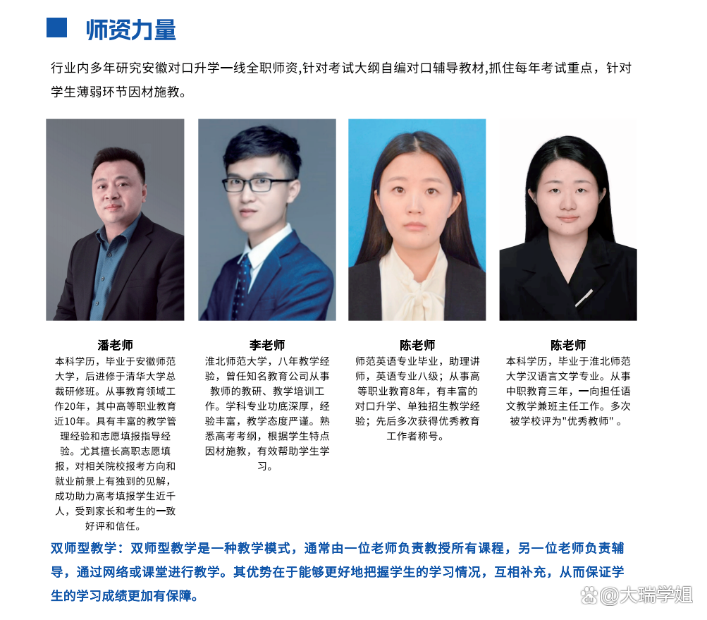 教学资源:安徽单招网与多所高职院校和培训机构建立了紧密的合作关系,整合了这些机构的教育资源,包括先进的教学设备、丰富的教学资料以及专业的教学场地等,确保考生能够接受到全面、系统的培训。